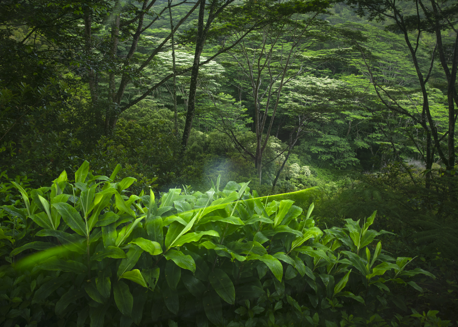 Admiring the sticks, stems and leaves of Kauai's forests.